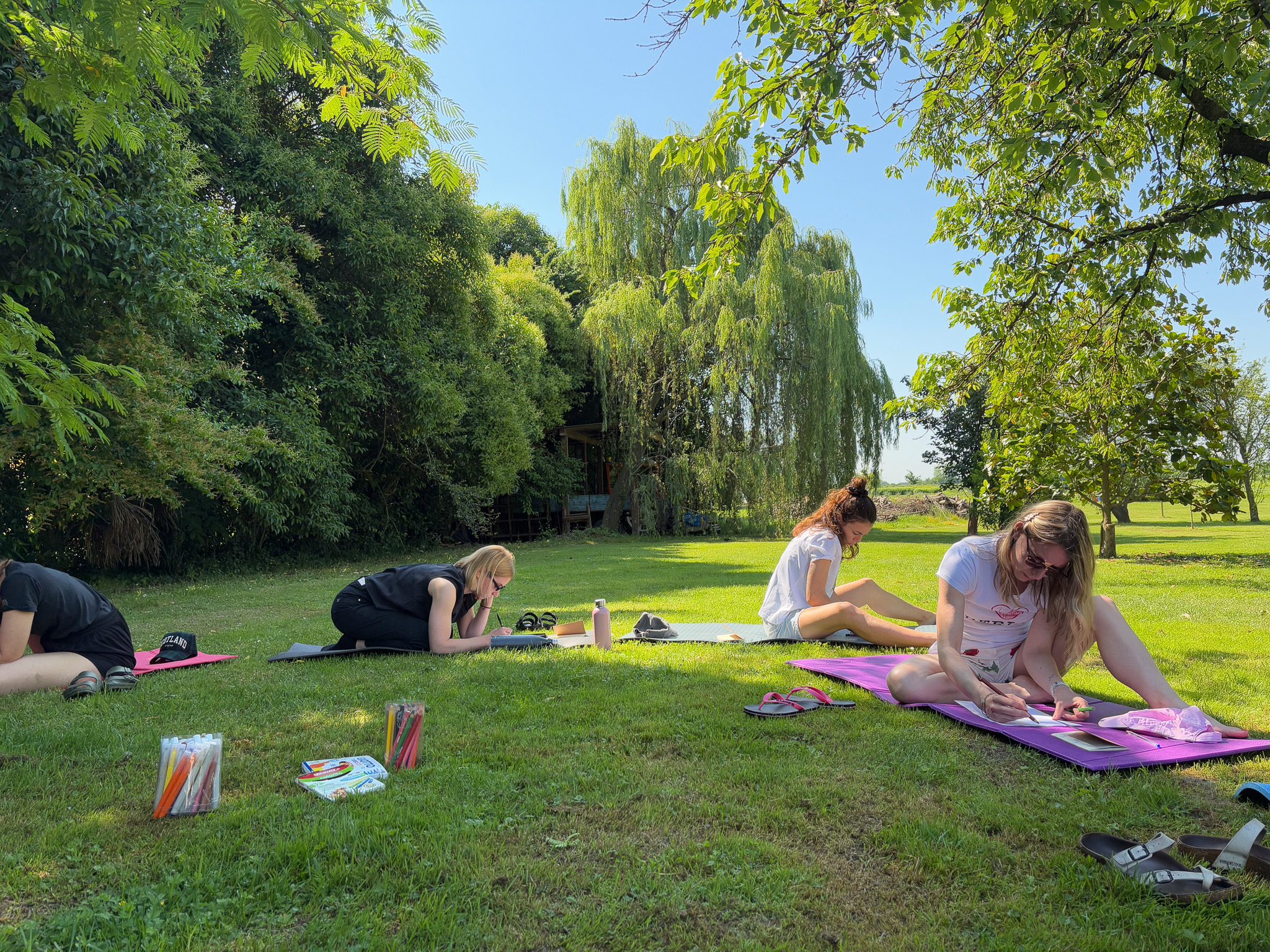 La giornata inizia presto, con lo stretching dei meridiani energetici, seguito da colazione condivisa e preparata davanti ai fornellini. La mattinata sarà dedicata a un’attività psicologica profonda: attraverso disegno e drammatizzazione esploreremo le nostre radici, ciò su cui ci appoggiamo per essere chi siamo.